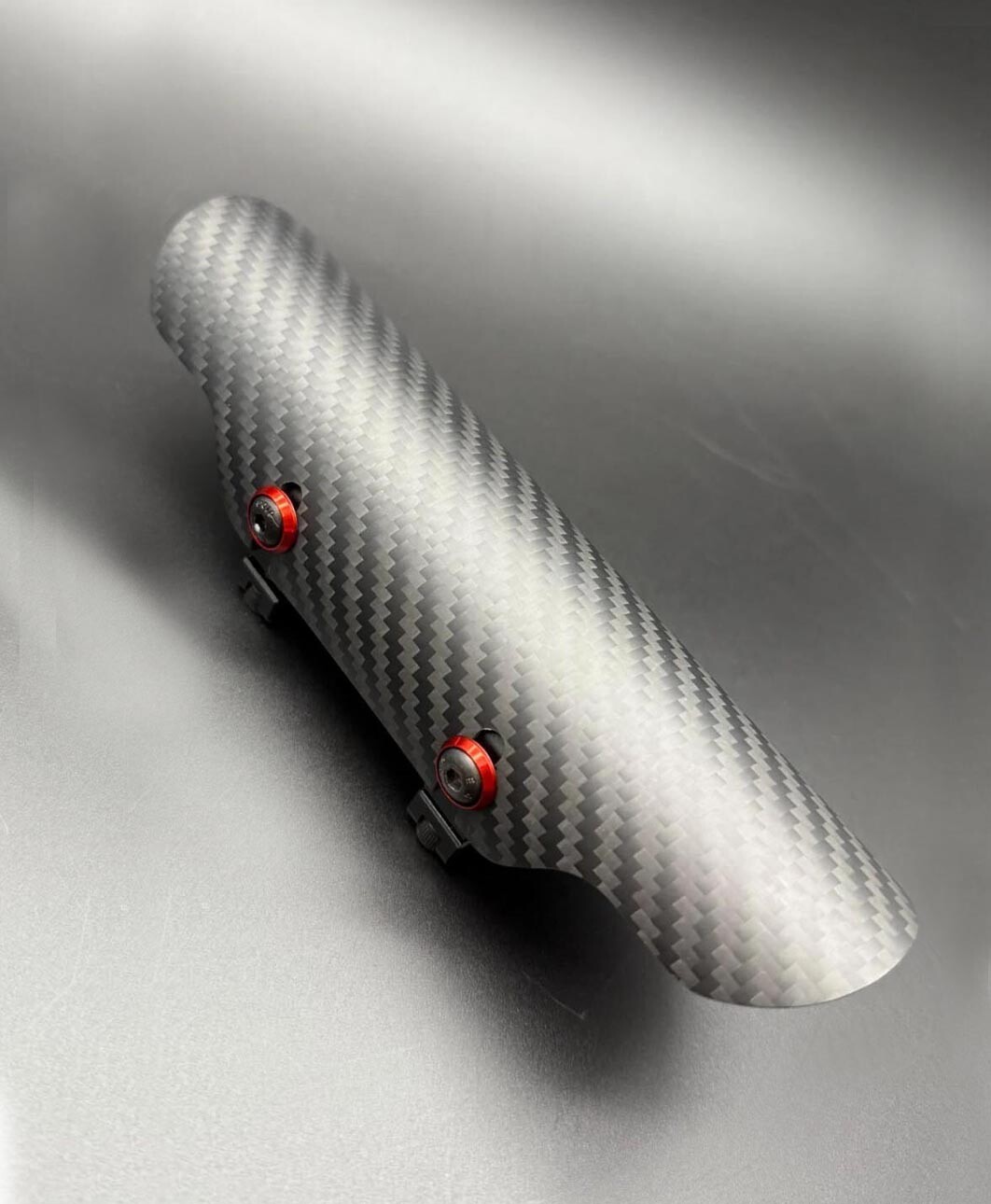 Щека надёжно крепится к Леший 2 через два алюминиевых хомута, а сам карбон крепится к хомутам на два винта M5.